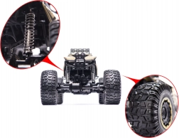 Deze robuuste rock crawler van 51 cm lengte is gemaakt om speels obstakels te overwinnen. Grote rubberen profielwielen en verende dempers zorgen voor uitstekende tractie en stabiliteit in het terrein. De metalen “carrosserie” verhoogt de duurzaamheid bij veeleisend rijden, ideaal voor zowel beginners als ervaren liefhebbers.