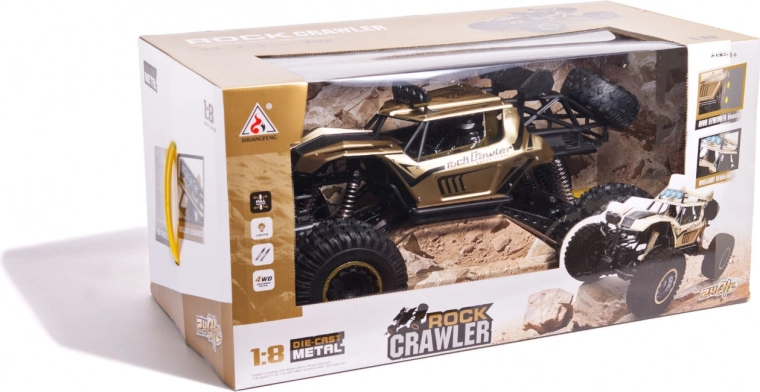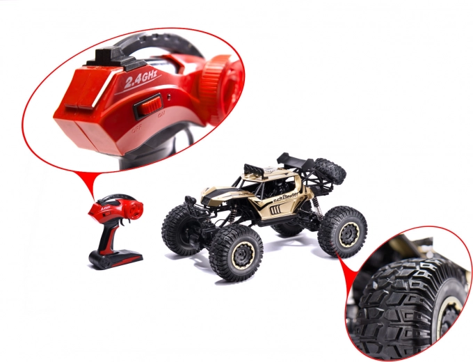 De enorme RC terreinwagen Rock Crawler op schaal 1:8 biedt 4x4-aandrijving, grote rubberen banden van 12,5 cm, veervering en LED-verlichting voor rijden bij schemer. Betrouwbare 2,4GHz-besturing zonder storingen maakt gelijktijdig rijden met meerdere modellen mogelijk, terwijl de metalen carrosserie duurzaamheid garandeert tijdens offroad-avonturen.