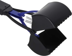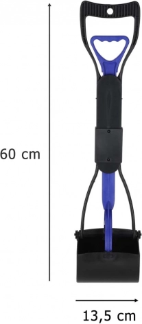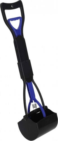 Praktische poepschep voor honden voor een snelle, schone en hygiënische opruimbeurt tijdens wandelingen. De opvouwbare handgreep ontziet je rug, de lichte constructie is eenvoudig te bedienen en herhaald gebruik bespaart geld én het milieu. Gemaakt van duurzaam kunststof, gemakkelijk af te wassen. Verkrijgbaar in de kleurcombinatie zwart‑blauw.