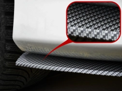 De uitgesproken textuur van koolstofvezel geeft de auto een moderne en sportieve uitstraling die op bumper en dorpels extra opvalt.