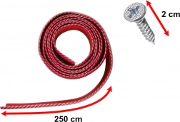 Inhoud van de verpakking: strip (2,5 m), 4× schroef, reinigingsdoekje. Bedoeld voor gladde oppervlakken; levensduur is afhankelijk van de kwaliteit van de verlijming.