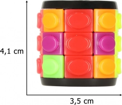 Ontdek een spannende uitdaging in compact formaat. De draaibare ringen van de cilinder laten je de gekleurde stukjes soepel verplaatsen en dankzij de vrije plek in één rij nieuwe combinaties creëren. Het doel is om de kleuren per rij te ordenen – op het eerste gezicht eenvoudig, maar al snel een boeiende puzzel voor urenlang vermaak.