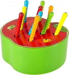 Ontdek het aanstekelijke magnetische spel in de vorm van een appel dat kinderen vermaakt én ontwikkelt. De taak is om met het magnetische stokje de rupsen te “vangen” en ze voorzichtig uit de gaatjes te trekken – en in de moeilijkere variant weer terug te plaatsen. De eenvoudige vorm en natuurlijke materialen ondersteunen de zelfstandigheid en nieuwsgierigheid van kinderen.