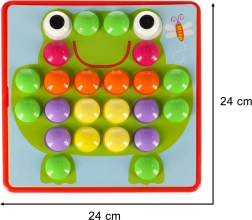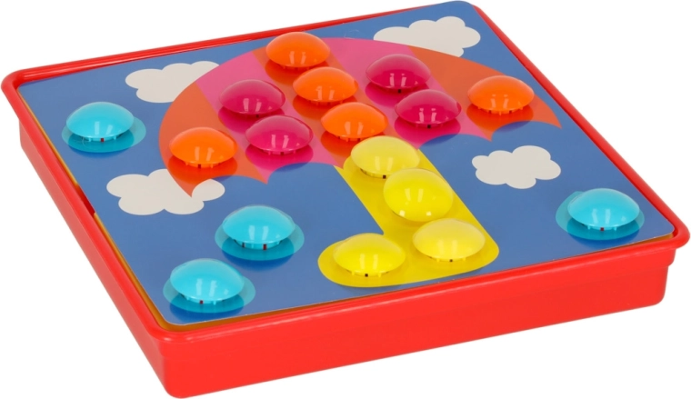 Kinderen plaatsen grote, goed vast te pakken pinnetjes in de openingen op kleur en maken zo hun eigen afbeeldingen. Het spel is intuïtief, leuk en dankzij de afgeronde vorm van de pinnetjes veilig. Geweldig voor leren thuis en activiteiten in de kleuterklas.