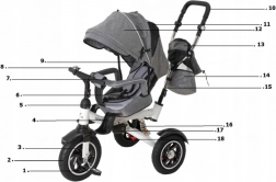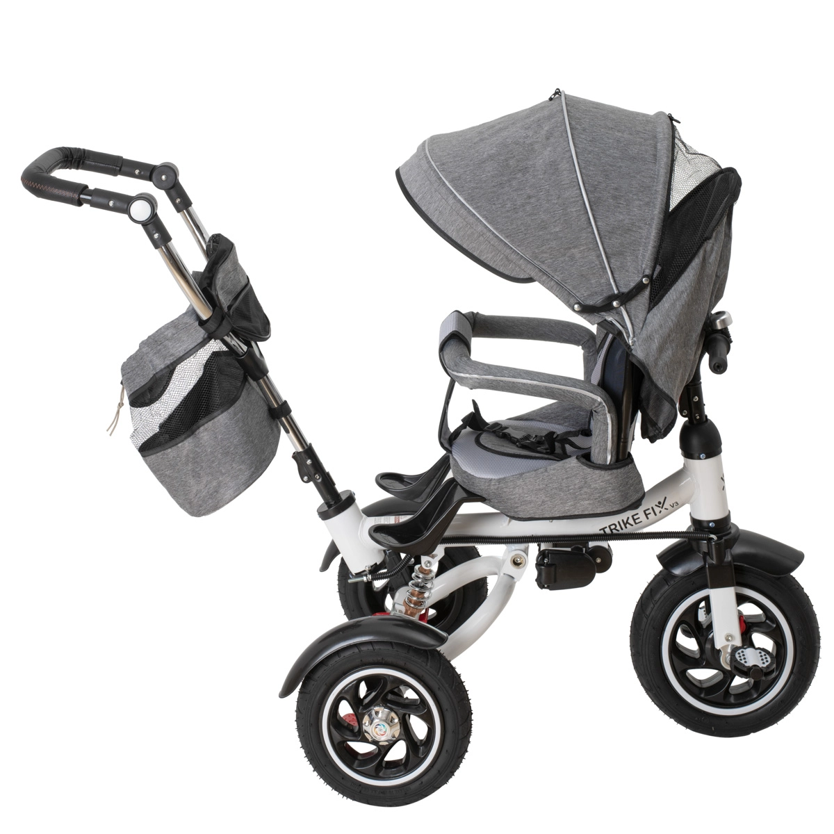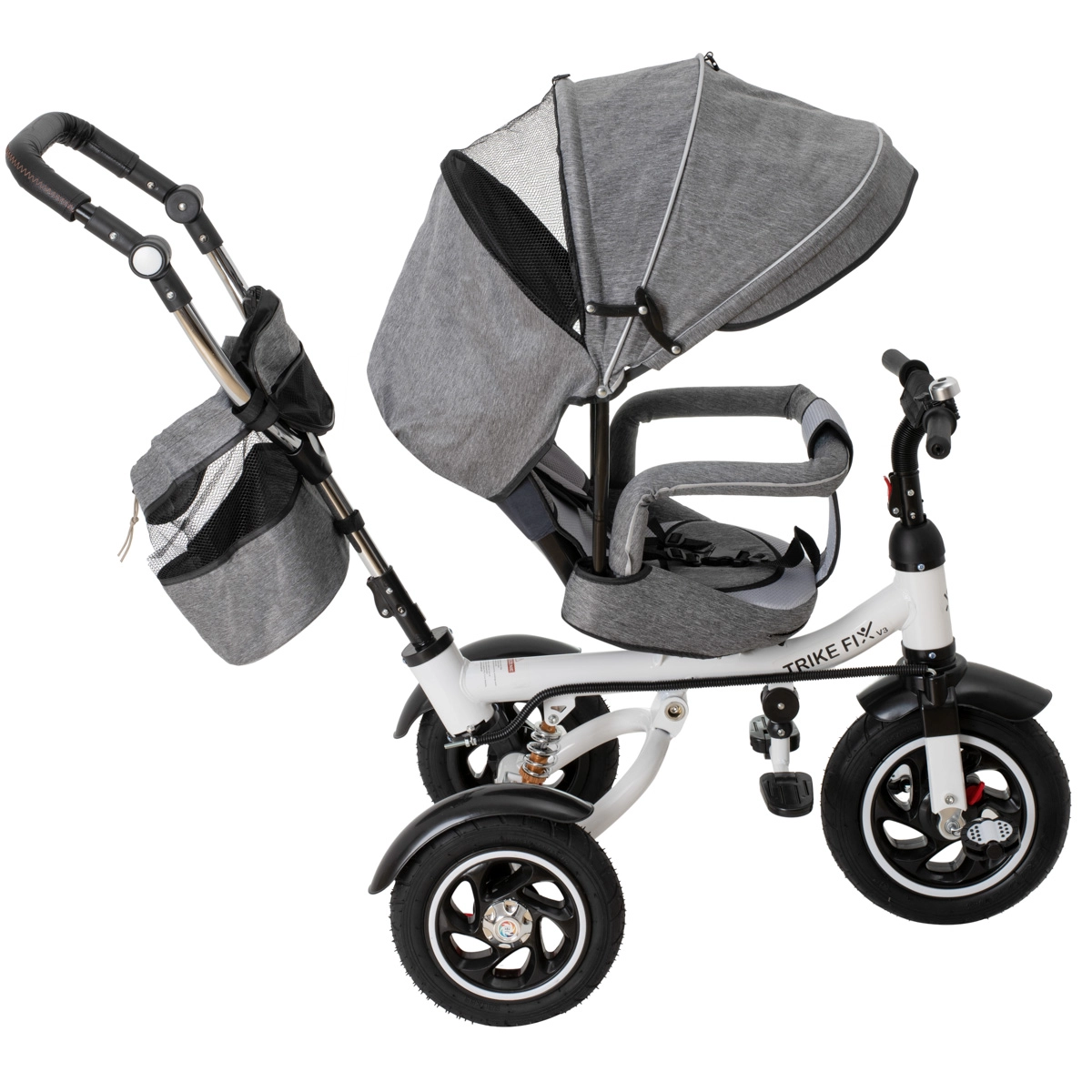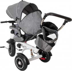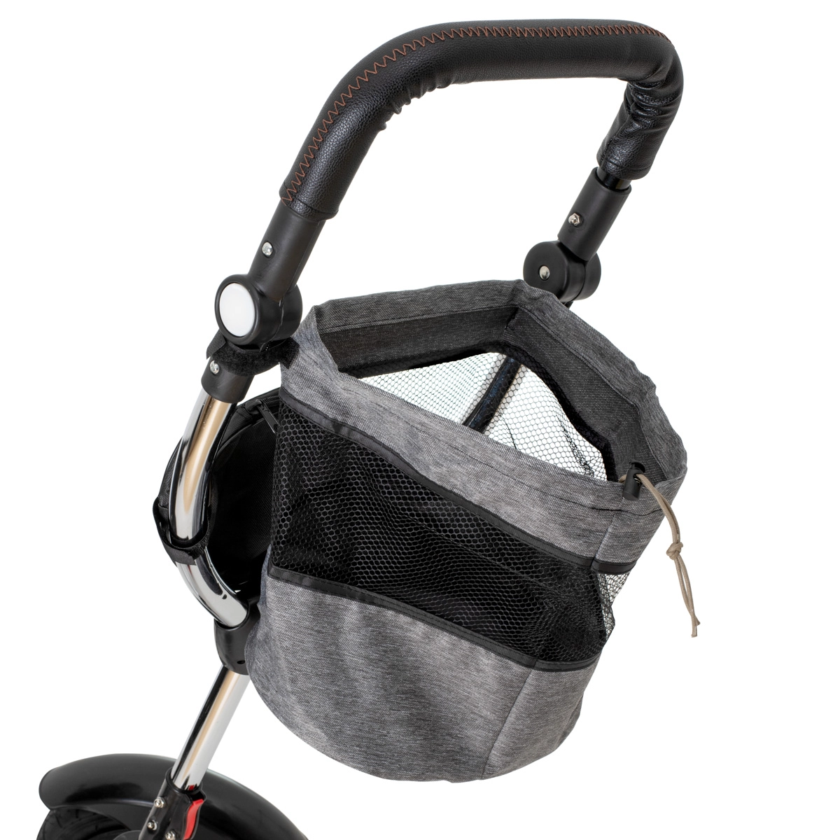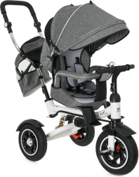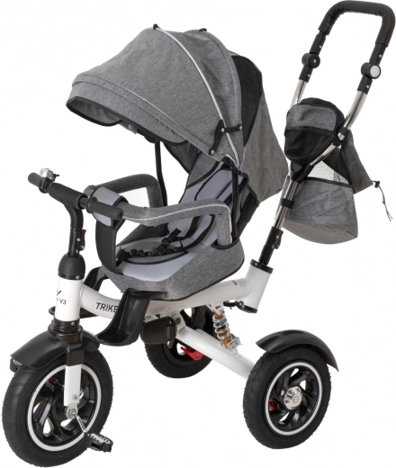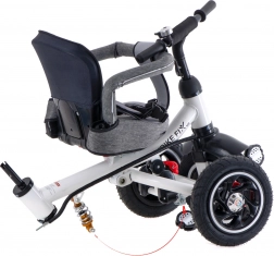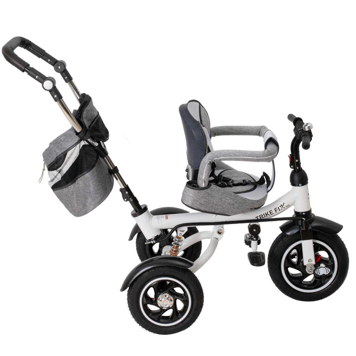 Deze multifunctionele driewieler past zich aan het tempo van het kind aan – van stand met ouderbesturing tot zelfstandig rijden. De vrijloop op het voorwiel maakt het kind comfortabel trappen mogelijk terwijl de ouder de richting bepaalt met de in hoogte verstelbare duwstang met duurzame kunstleren bekleding.