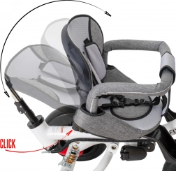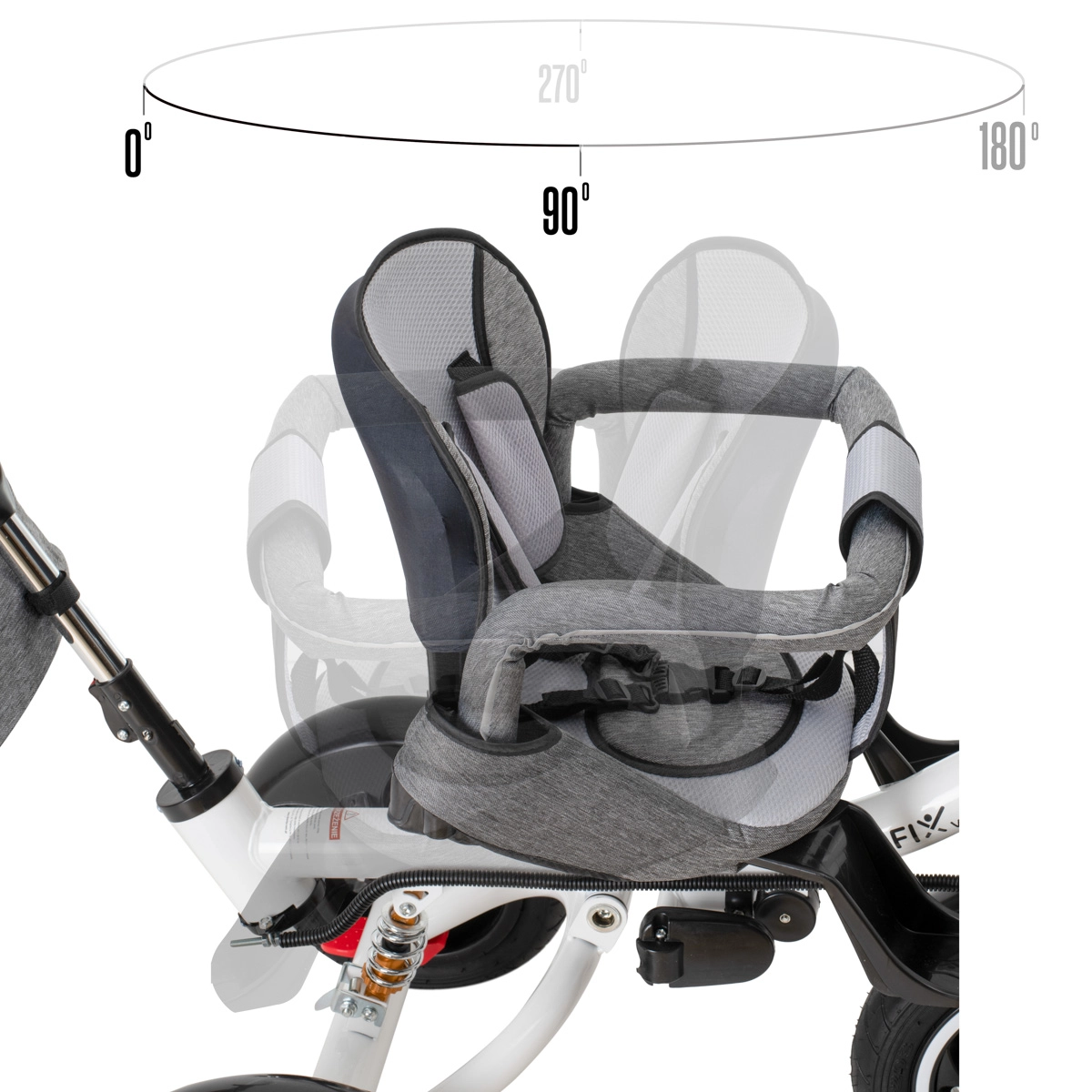 De zitting kan met één beweging worden gedraaid, zodat het kind naar de ouder kan kijken of de wereld in de rijrichting kan ontdekken. Ideaal voor kleinere kinderen en nieuwsgierige rijders.