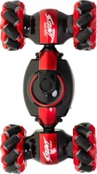 Bedien de wagen zoals jij wilt: met de klassieke joystickcontroller of via de gebonden polsband met Gravity Sensor. Een stabiele verbinding wordt verzorgd door 2,4 GHz. De constructie is ontworpen voor hoge schokbestendigheid, de 1200 mAh accu levert tot 20 minuten rijtijd en de LED-verlichting benadrukt de futuristische look.