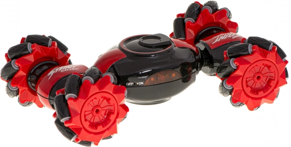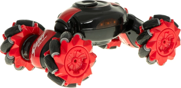 Een leuk en robuust RC-voertuig met dubbele besturing voor dynamisch rijden en stunts. Dankzij multidirectionele wielen, 360° spins en twee rijmodi (race/off-road) beheerst het zowel snelle sprints als uitdagend terrein. In de verpakking zitten twee controllers: een klassieke joystick en gebarenbesturing met Gravity Sensor op 2,4 GHz.