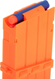 Inclusief afneembaar vizier voor preciezer richten en een magazijn voor 12 foam pijltjes dat snel loskomt met een knop aan de zijkant. In de doos zitten 20 pijltjes (10 klassieke en 10 met zuignap), zodat je direct na het uitpakken kunt beginnen.