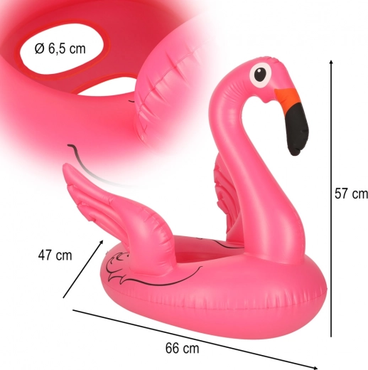 De opblaasbare ring met rugsteun in de vorm van een flamingo is de ideale hulp bij de eerste kennismaking van kinderen met water. Het zitgedeelte met twee openingen (ca. 6,5 cm) houdt het kindje betrouwbaar binnenin en verkleint het risico op wegglijden. De zijvleugels dienen als praktische handgrepen voor een zekerder gevoel tijdens spel en rust.
