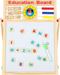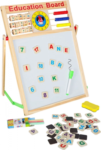 Dit multifunctionele bord is ideaal voor thuisonderwijs en de kinderkamer. De zwarte zijde is bedoeld om met krijt op te tekenen en te schrijven, de witte magnetische zijde voor schrijven met stift en het bevestigen van magneten. De stabiele houten constructie zorgt voor veilig en comfortabel gebruik.