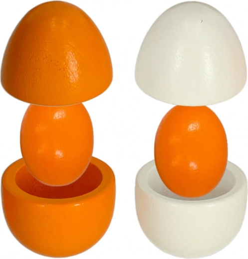 Houten eieren met uitneembare dooiers