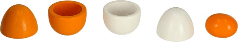 - Deelbare eieren, uitneembare dooiers, realistische uitvoering