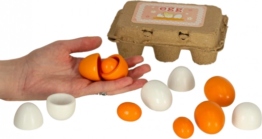 - Realistisch spel: doos voor 6 eieren, 3 hele en 3 deelbare eieren met uitneembare dooier