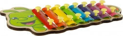 Deze kleurrijke kinderxylofoon is een ideaal eerste muziekinstrument. Acht gestemde metalen latjes in regenboogkleuren prikkelen de natuurlijke nieuwsgierigheid en ontwikkelen spelenderwijs het muzikaal gehoor en het gevoel voor ritme. Een zachte tik met het stokje laat een zuivere toon klinken – de kracht van de aanslag beïnvloedt het volume.