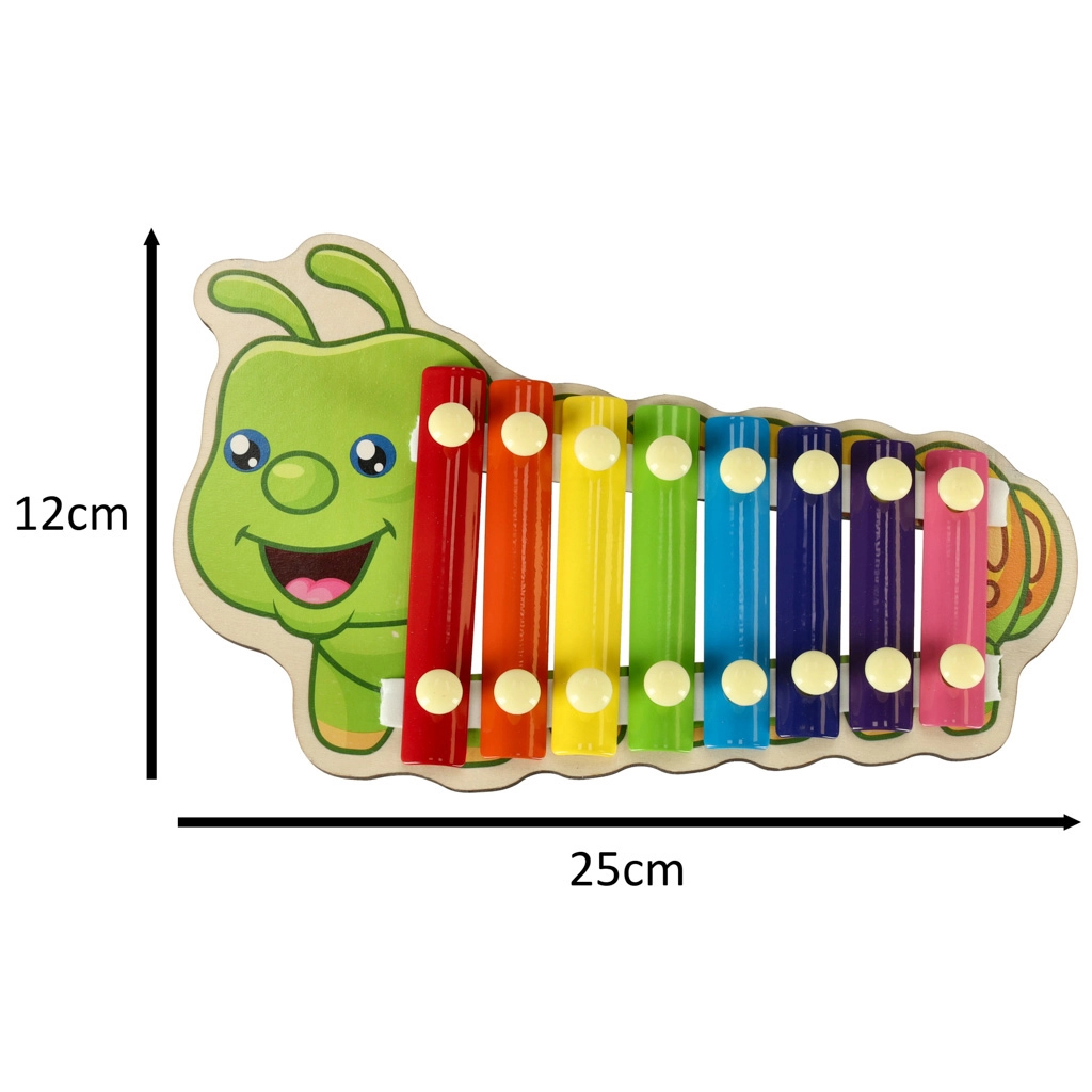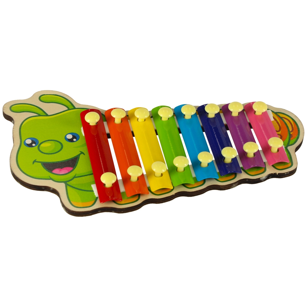 Het rupsdesign valt direct op en nodigt uit tot langdurig spel. Het instrument stimuleert concentratie, geduld en creativiteit, en helpt kinderen kleuren te herkennen en eenvoudige melodieën te componeren.