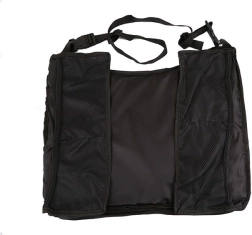 Het tafeltje is gemaakt van duurzame en waterdichte polyester, is eenvoudig te bevestigen met verstelbare riemen en net zo snel weer op te bergen. Vier meshvakken aan de zijkanten houden speelgoed, snacks, telefoon of tissues overzichtelijk geordend.