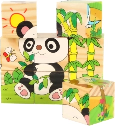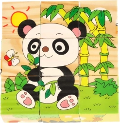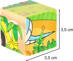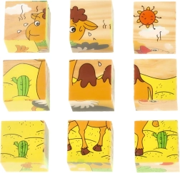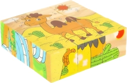 Houten puzzel Safari 3D 6v1 is een perfect hulpmiddel voor leren en plezier in één. Met negen houten blokken van 3,5 cm x 3,5 cm x 3,5 cm, kun je zes verschillende dierenafbeeldingen creëren - een panda, een slang, een aapje, een struisvogel, een kangoeroe en een kameel. De hele puzzel meet 10 cm x 10 cm x 3,5 cm.