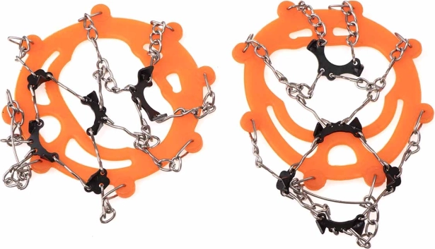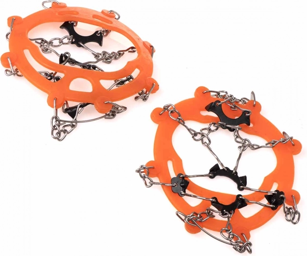 De antislipconstructie biedt uitstekende tractie. Metalen spikes en een duurzame rubberen frame zorgen ervoor dat je stevig op je voeten blijft.