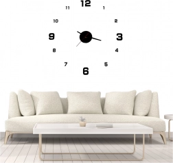 Het is ook een fantastisch cadeau-idee. Je kunt de grootte van de klok aanpassen aan je wensen, van 70 cm tot 130 cm. Je installeert hem gemakkelijk dankzij de zelfklevende elementen, ideaal voor gladde oppervlakken.