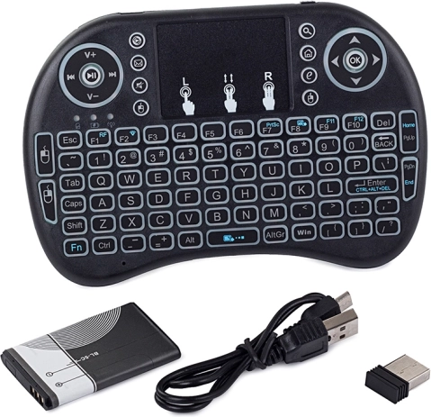 Krijg absolute vrijheid met dit compacte draadloze toetsenbord dat bediening van apparaten op grotere afstand mogelijk maakt. Het is uitgerust met LED-verlichting in groene, blauwe en rode kleuren, wat uitstekende bruikbaarheid garandeert, zelfs bij weinig licht.