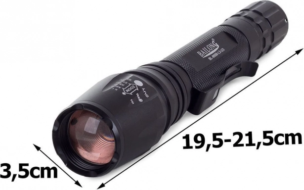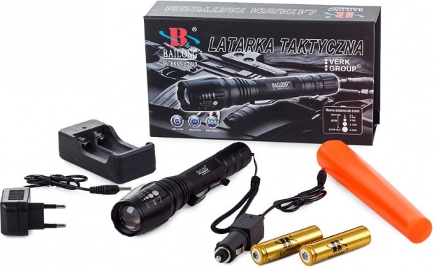 Militaire tactische zaklamp Bailong is robuust en krachtig, ideaal voor professionals en outdoorliefhebbers. Biedt een lange levensduur van de diode, krachtig bereik en instelbare zoom.