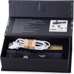 Voor het lichtvermogen zorgt de CREE XM‑L T6‑led met een levensduur tot 100.000 uur. De traploze zoom met lens laat je schakelen van een smalle, verre bundel met een bereik tot 400 m naar brede verlichting van de omgeving. Er zijn drie modi beschikbaar (100 %, 50 %, stroboscoop) en dezelfde modi biedt ook het praktische zijlicht. Voeding via een 18650‑cel met opladen via USB maakt gebruik thuis en in het veld eenvoudig; een clip voor bevestiging en een elegante geschenkverpakking ontbreken niet.