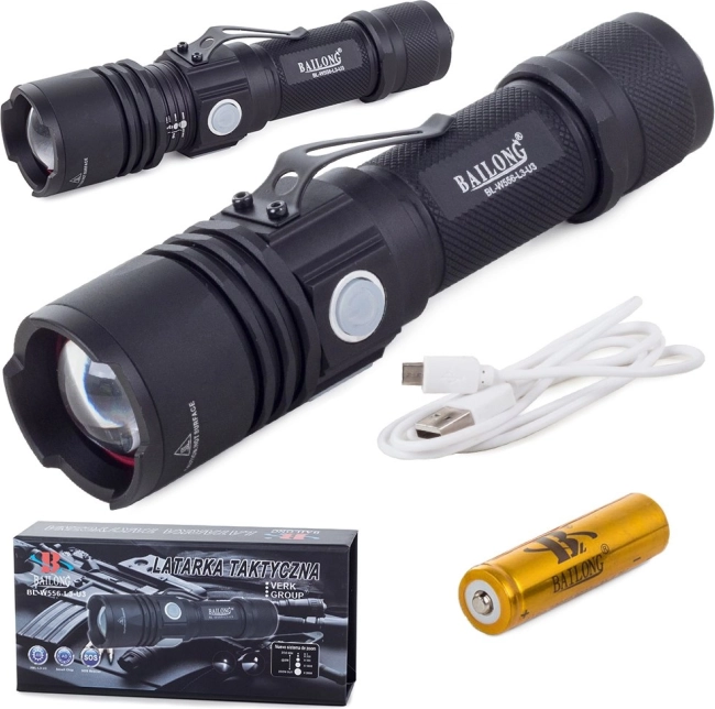 De duurzame tactische zaklamp BAILONG is vervaardigd uit vliegtuigaluminium met een hardgeanodiseerde afwerking. Zorgvuldige afdichting met O‑ringen beschermt het mechanisme tegen regen, vocht en modder, terwijl het antislipoppervlak en de ergonomische greep in elke situatie voor een zekere houvast zorgen.