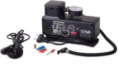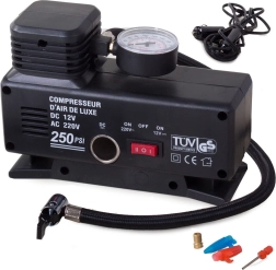 Universele compressor voor thuis en onderweg, combineert 12 V en 230 V voeding, zodat je hem zowel in de auto als in de garage kunt gebruiken. Dankzij de geïntegreerde manometer heb je de druk altijd onder controle, terwijl de compacte afmetingen en het lage gewicht het dragen en opbergen vergemakkelijken.