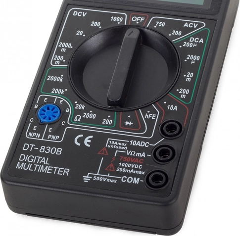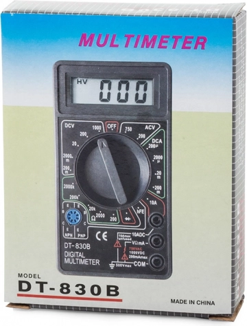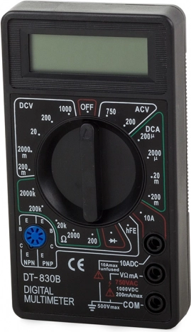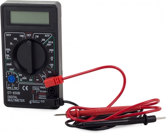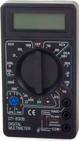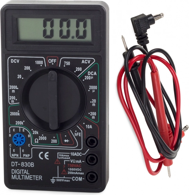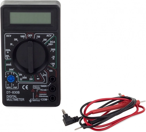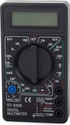 Compacte en betrouwbare multimeter op basis van het beproefde ontwerp DT-830B waarmee u DC/AC-spanning, gelijkstroom en weerstand kunt controleren. Het overzichtelijke LCD-display vergemakkelijkt het aflezen van waarden en de automatische uitschakeling spaart de batterij zodat het apparaat altijd klaar is voor gebruik.