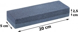 De afmetingen 20 × 5 × 2,5 cm liggen goed in de hand en bieden stabiele ondersteuning tijdens het slijpen. De rechthoekige vorm maakt het eenvoudig om het blad over de volledige snede te geleiden.