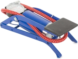 De voetpomp met een eencilinderzuiger is een onmisbare hulp op reis, of u nu een autoband, fietsband, motorband of bal moet oppompen. Deze robuuste en duurzame pomp is uitzonderlijk efficiënt dankzij de eencilinderzuiger en de speciaal meegeleverde tuiten voor verschillende doeleinden. Inhoud verpakking: