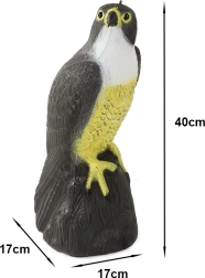 De natuurgetrouwe valkfiguur wekt bij ongewenste vogels en kleine plaagdieren een natuurlijke visuele afschrik. Dankzij de realistische details, voet en opvallende kleuring is deze verjager ideaal voor tuinen, boomgaarden, wijngaarden, terrassen en balkons, waar hij helpt schoon te houden en gewassen te beschermen.