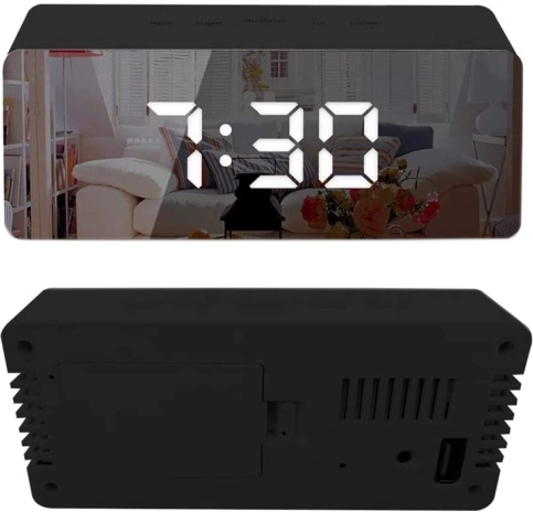 Multifunctionele LED wekker 4-in-1 toont tijd, datum en temperatuur, biedt een wekker met snooze en heeft een spiegeldisplay met witte achtergrondverlichting. Dankzij het elegante design past hij perfect in de slaapkamer, kantoor en kinderkamer.