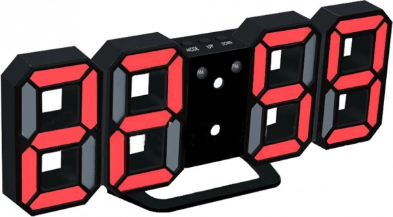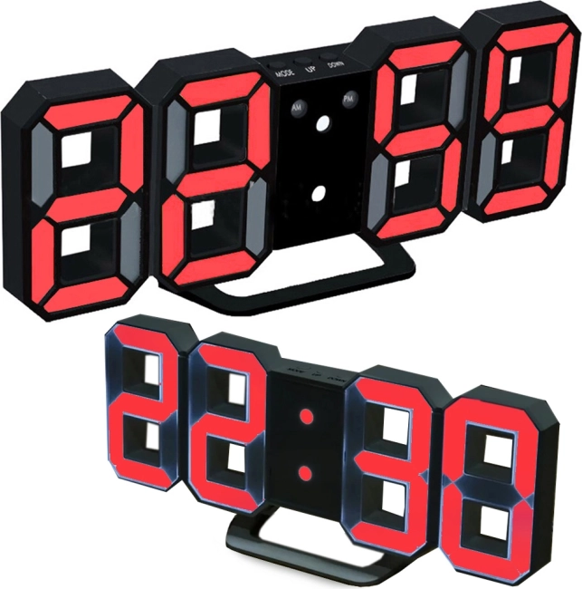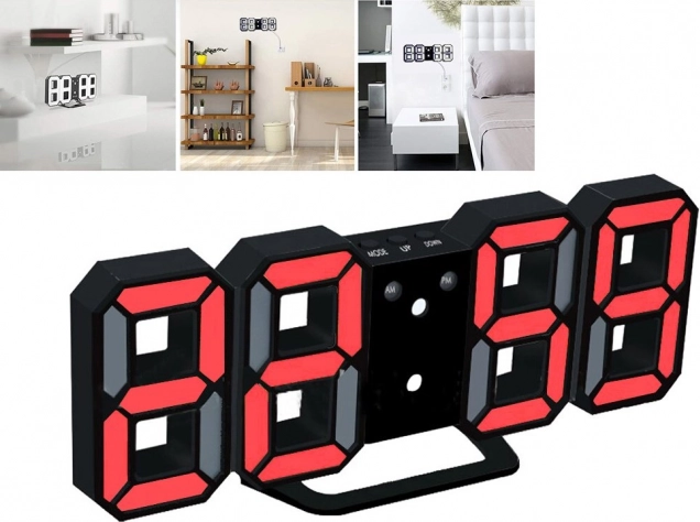 Moderne digitale klok met groot LED-display voor duidelijke tijdweergave. Biedt 3 helderheidsniveaus, een thermometer, kalender, wekker met snooze en de mogelijkheid om aan de muur te hangen of op tafel te plaatsen. Voeding via USB, goed leesbaar display, zichtbaar ook van een afstand.