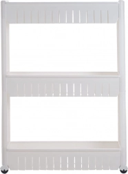 Een slimme oplossing voor kleine ruimtes: deze smalle verrijdbare kast vult ongebruikte kieren efficiënt op en biedt stabiele opbergruimte voor boodschappen, reinigingsmiddelen of toiletartikelen. De lichte constructie met wieltjes zorgt voor comfortabele bediening en snelle toegang tot opgeborgen items.