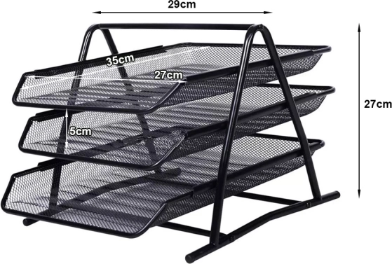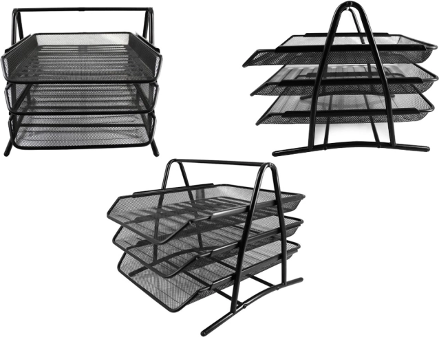 De documentorganizer biedt drie ruime laden die soepel schuiven op metalen geleiders. De stevige constructie garandeert een lange levensduur en stabiliteit op het bureau.