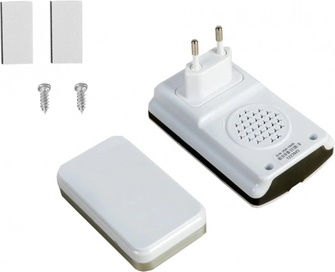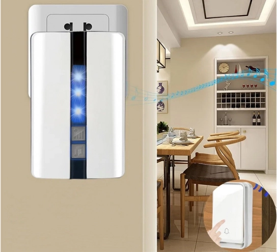 Ontdek een praktische oplossing voor uw huis of kantoor met onze draadloze deurbel. Er zijn geen batterijen nodig, wat kosten bespaart en het gebruik comfortabel maakt. De deurbel wordt eenvoudig rechtstreeks in het stopcontact geplaatst.
