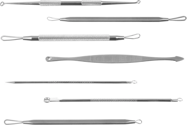Gebruiktip: Reinig en verwarm de huid vooraf (bijv. met een warm kompres). Plaats de geschikte lus over de comedo, druk zachtjes en duw de onzuiverheid omhoog. Behandel de huid na afloop met een antisepticum en desinfecteer de tools.