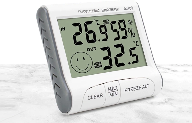 Volg dagelijkse schommelingen dankzij het geheugen voor minimale en maximale waarden en schakel tussen graden Celsius en Fahrenheit.