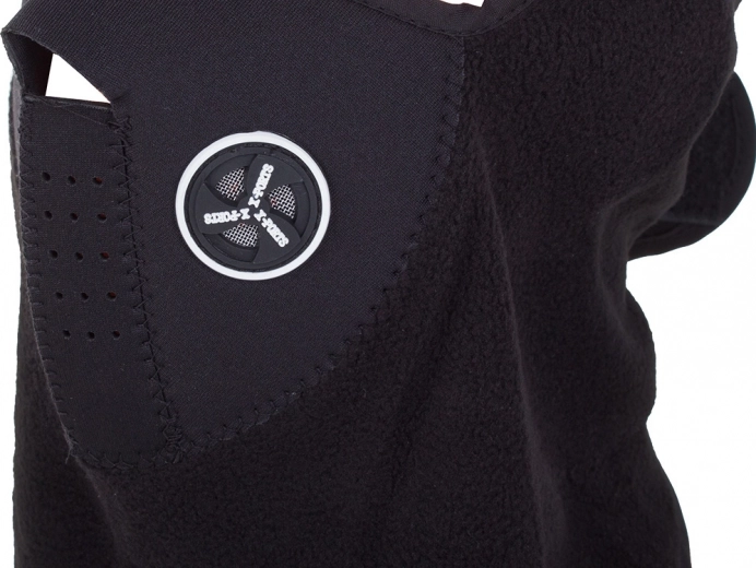 Zoek je betrouwbare bescherming tegen vorst en harde wind? Dit thermoactieve gezichtsmasker combineert functionele materialen met een doordachte snit. Het neoprengedeelte bedekt wangen en mond, zachte fleece verwarmt nek en oren. Dankzij het gevormde profiel sluit het natuurlijk aan tot aan de ogen en stoort het niet onder een helm.