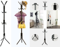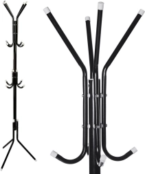 Stijlvolle en praktische staande kapstok, geschikt voor hal, kleedruimte, kantoor, boetieks of kapperszaken. Dankzij de doordachte plaatsing van haken op drie niveaus hang je gemakkelijk jassen, parka’s, tassen en accessoires op. Poedergecoat staal garandeert een lange levensduur en weerstand tegen beschadiging.
