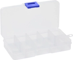 De modulaire oplossing laat toe om minimaal 4 en maximaal 10 vakken in te stellen – je verwijdert of plaatst simpelweg de afzonderlijke tussenschotjes. De transparante uitvoering biedt snel overzicht over de inhoud, terwijl de nauwaansluitende clip het deksel tijdens transport betrouwbaar gesloten houdt.