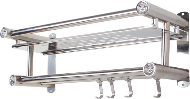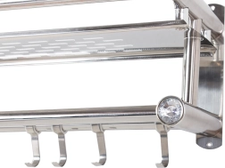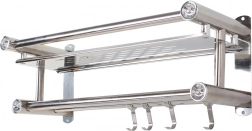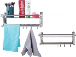 Het bovenste legvlak voor cosmetica, de dubbele handdoekstang en vier haken houden je badkamer perfect georganiseerd.