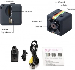 Kleine webcam, ideaal voor online lessen, conferenties en andere toepassingen. Dankzij de ingebouwde microfoon is extra uitrusting niet nodig en biedt het hoge beeldkwaliteit voor duidelijke online vergaderingen. De camera is uitgerust met handige clips voor eenvoudige bevestiging aan kleding, wat opname ook buitenhuis mogelijk maakt. Maximale grootte van de ondersteunde microSD-kaart is 32 GB. Voeding wordt geleverd door de bijgevoegde USB-kabel.