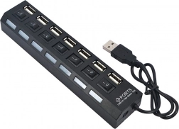 De USB hub is een ideale oplossing voor het gelijktijdig aansluiten van maximaal 7 apparaten. Elke poort is uitgerust met een individuele ON/OFF-schakelaar en een blauwe LED die de status van elke poort aangeeft.