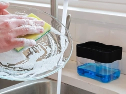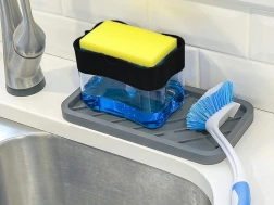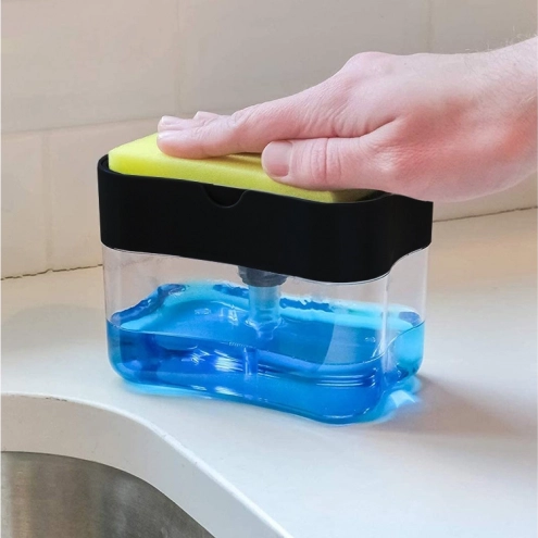 Houd keuken en badkamer netjes met deze slimme dispenser die een reservoir voor vloeibare zeep of afwasmiddel combineert met een praktische sponshouder. Met één druk op de spons krijgt u precies zoveel middel als u nodig hebt – zonder verspilling en zonder druppels rond de gootsteen.