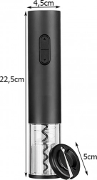 De bediening is uiterst intuitief: plaats de opener op de flessenhals, druk op de knop en de kurk is eruit. Het apparaat werkt op 4 AA-batterijen en is compatibel met de meeste wijnkurken met een diameter van 20–24 mm. In de verpakking vindt u ook een praktische foliesnijder voor het schoon en veilig verwijderen van de capsule.