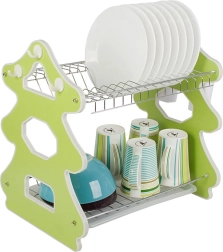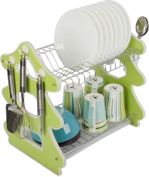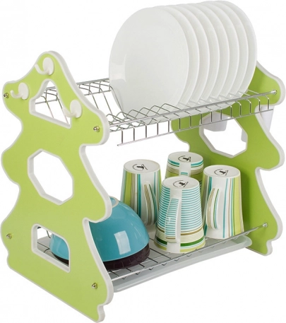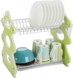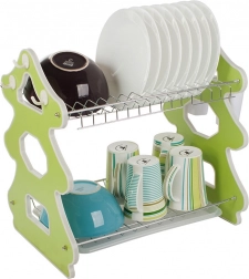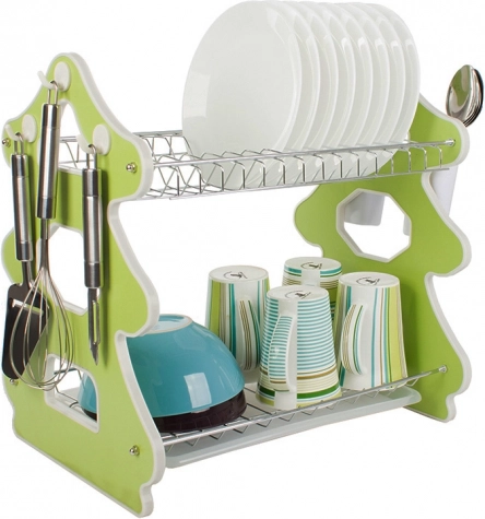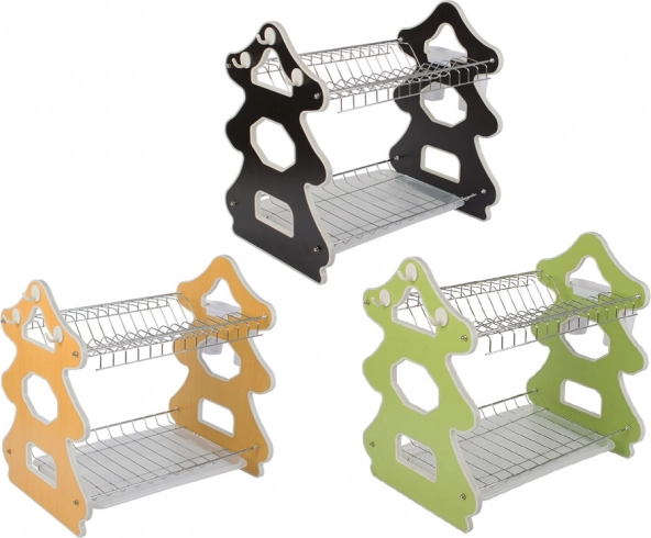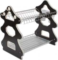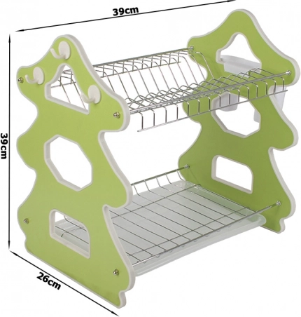 Het elegante afdruiprek met twee verdiepingen is ideaal voor kleine én ruime keukens. De bovenste etage biedt plaats aan tot 14 borden, de onderste is bedoeld voor kommen, mokken en glazen. De zijwaartse bestekorganizer kan overal langs de rand worden geplaatst en drie praktische haakjes zijn handig voor theedoeken of keukengerei.