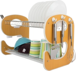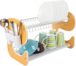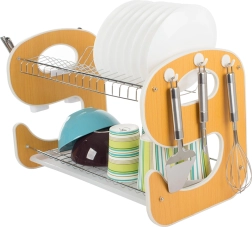 Elegant en functioneel twee-laags afdruiprek voor servies met een E-vormig design wordt een stijlvolle en praktische hulp in je keuken. De lekbak vangt water op en beschermt het werkblad, terwijl twee niveaus borden, kommen, glazen en mokken efficiënt drogen.